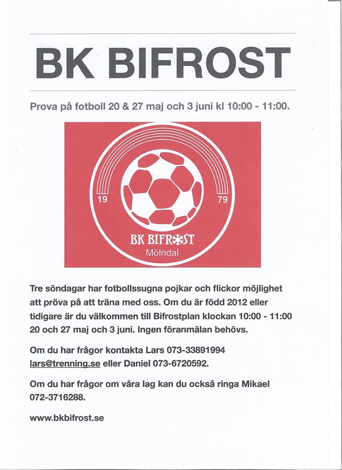 Vi välkomnar nya barn till vår klubb och vår nya fina fotbollsplan. BK Bifrost Fotbollsklubb Mölndal 6 maj 2018 0kommentarer