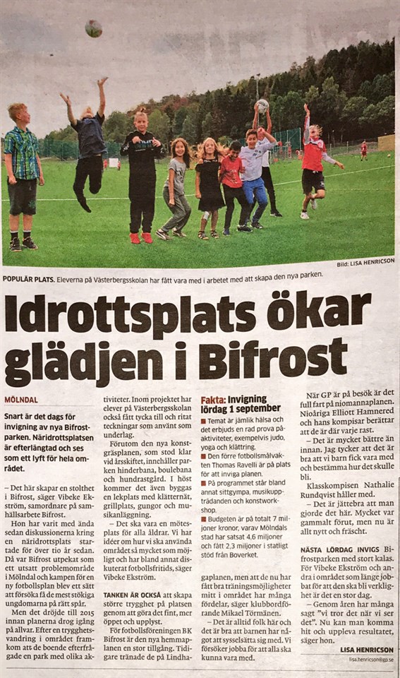 En kort artikel i dagens GP om fotbollsplanen inför nästa veckas invigning. BK Bifrost Fotbollsklubb Mölndal 25 aug 2018 0kommentarer